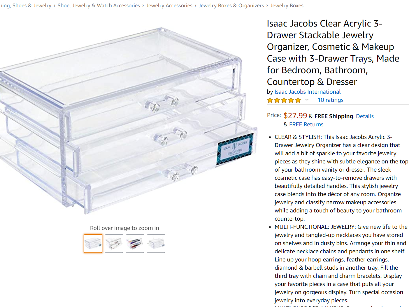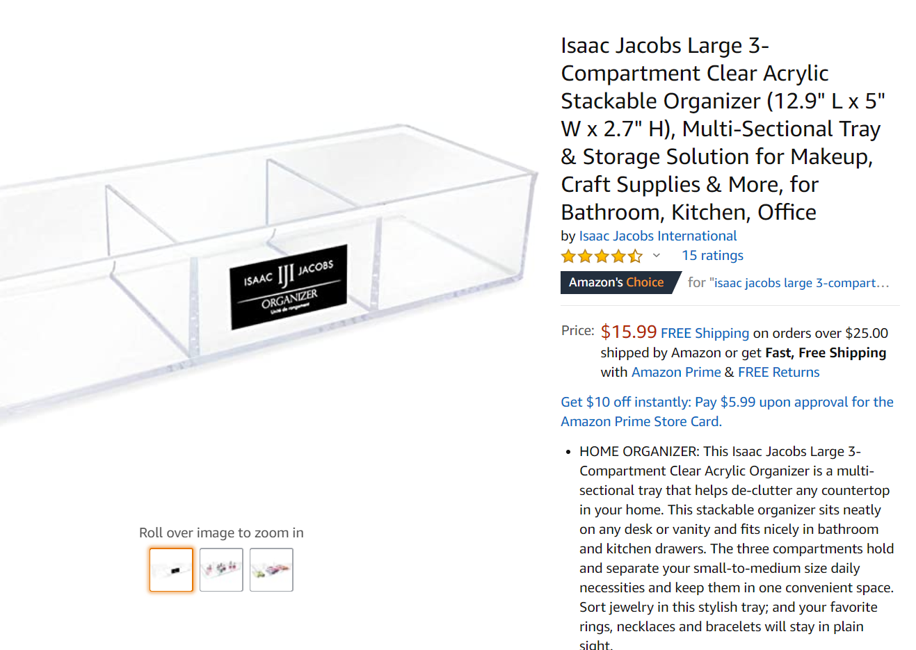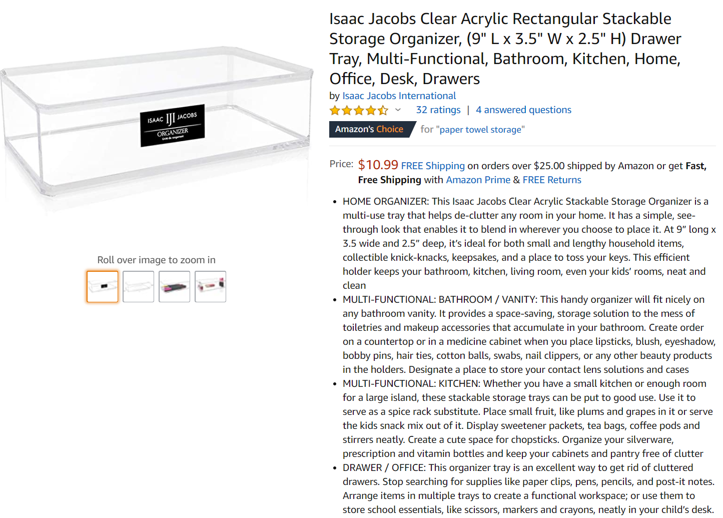 Isaac Jacobs Clear Acrylic Rectangular Stackable Storage Organizer