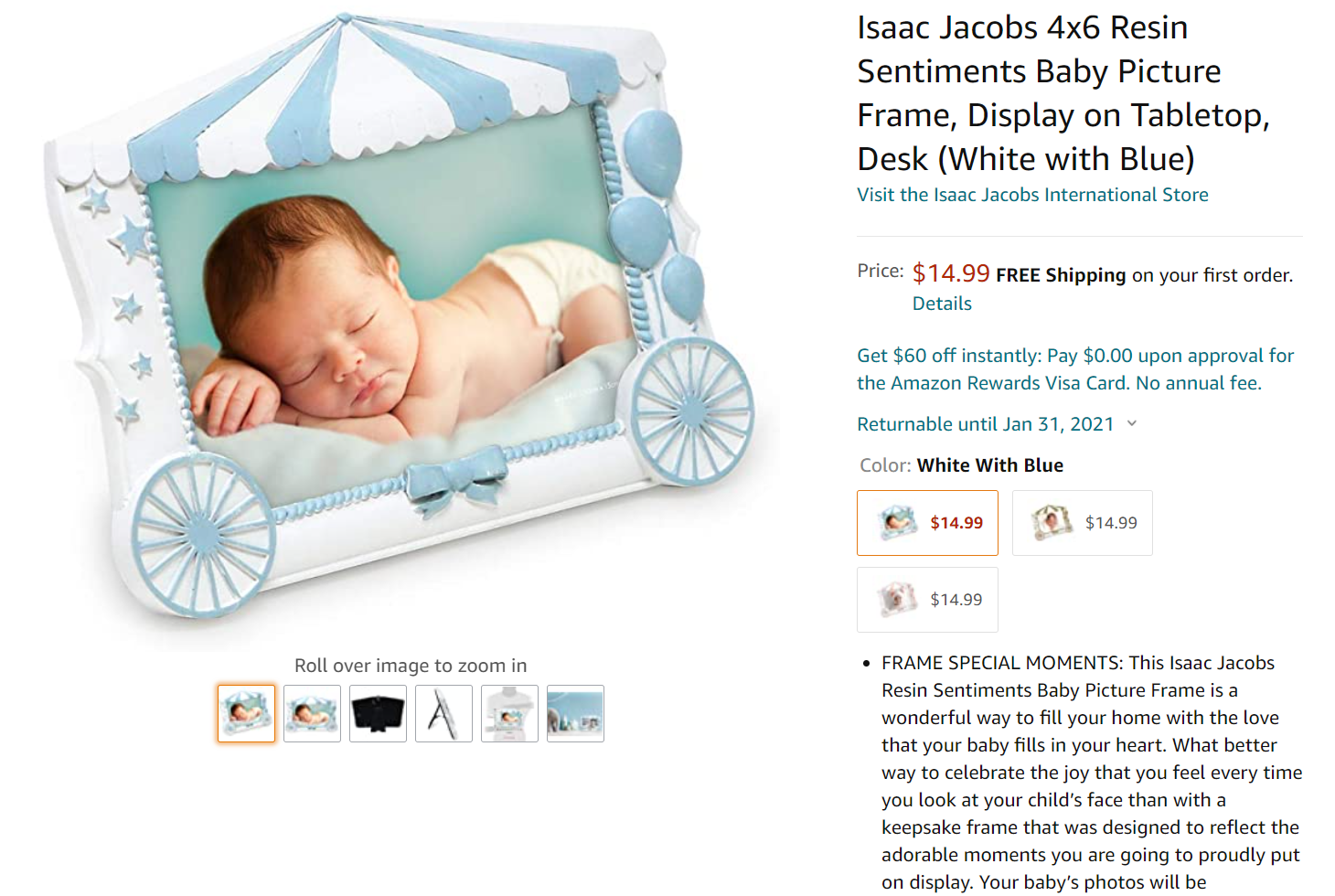 Isaac Jacobs Champagne Mirror Bead Picture Frame